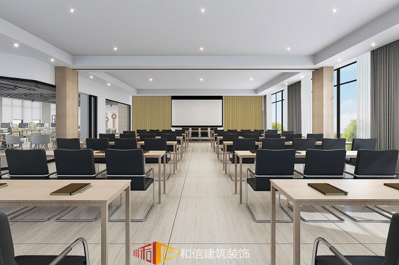 會議廳作為智慧的充電站,是集學(xué)習(xí)、黨建活動于一體的智能空間,桌椅整齊有序地擺放,營造出濃厚的學(xué)習(xí)氛圍,結(jié)合燈光的控制,線與面交織延伸,時尚又不失莊嚴。