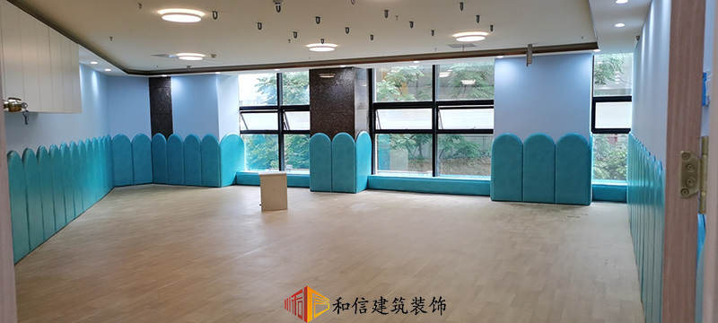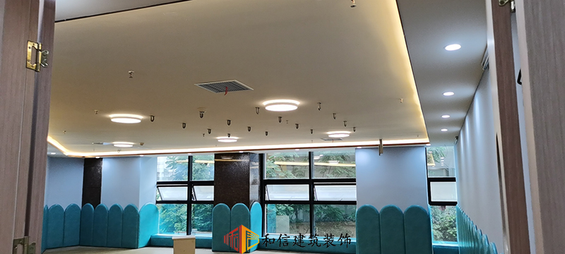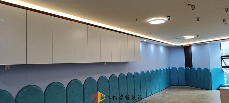 教室設(shè)計上,和信建筑采用了水鴨藍的弧形作為墻面裝飾,水鴨藍在色彩心理學中代表著可靠和積極的精神進步,它可以激發(fā)我們的靈感,也可以撫慰心靈。
